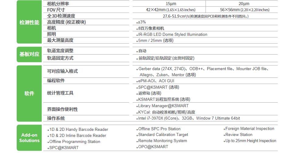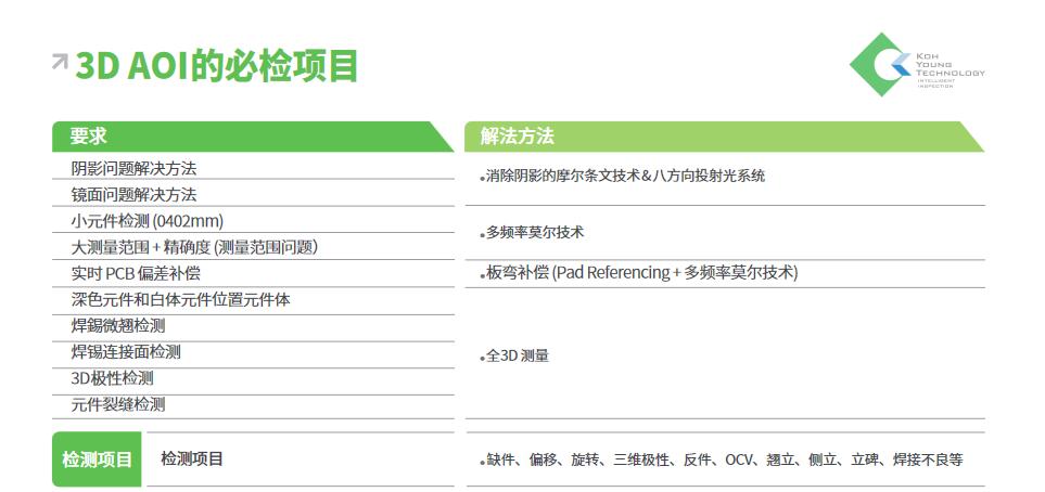 KOH YOUNG TECHNOLOGY Zenith UHS 高速全3D AOI,帶來 SMT 工藝管理的革命 行業(yè)領(lǐng)先的全三維測量檢測設(shè)備技術(shù)解決方案 - 業(yè)界唯一既符合 IPC-610 標(biāo)準(zhǔn)又具備直觀編程的檢測標(biāo)準(zhǔn)設(shè)置 - 通過基于測量的數(shù)據(jù)執(zhí)行缺陷診斷,并消除可能出現(xiàn)錯誤的原因 - 完美的三維焊點(diǎn)檢測 基于全三維數(shù)據(jù)的工藝優(yōu)化解決方案:實(shí)現(xiàn)工業(yè) 4.0 /智能工廠 適用于各種生產(chǎn)環(huán)境的最佳規(guī)格典范