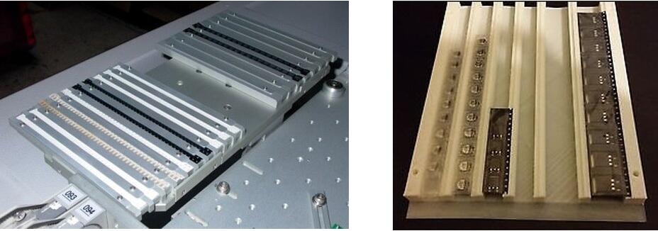 大多數(shù)PCB是由相當堅硬的1.6mm FR4材料制成的,但是當使用較薄的材料或有槽縫時,PCB的支撐將是一個挑戰(zhàn)。 在組件放置過程中,這可能導致不一致的結果,因為始終會有一定數(shù)量的放置壓力-如果未完全支撐PCB,則它將發(fā)生撓曲。 設置支持可能很耗時,因此可以在此處看到許多可用的自適應系統(tǒng)。 靈活的支撐系統(tǒng)不僅可以快速設置,而且如果要在已將組件安裝到下側的情況下構建雙面組件時,它們也要考慮在內(nèi)。 在下面可以看到兩個最常見的解決方案,它們將自身模制在已放置的組件周圍