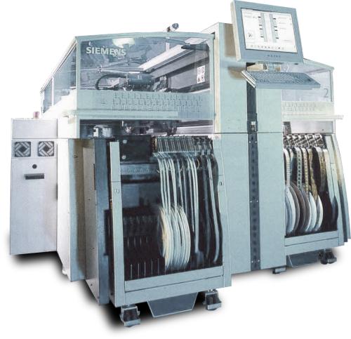 西門子S系列屬90年代末2000年代初的產(chǎn)品,屬于多功能中速機,可貼元件范圍:0402到18.7mm X 18.7mm,理論貼片速度:20,000(粒/小時)
